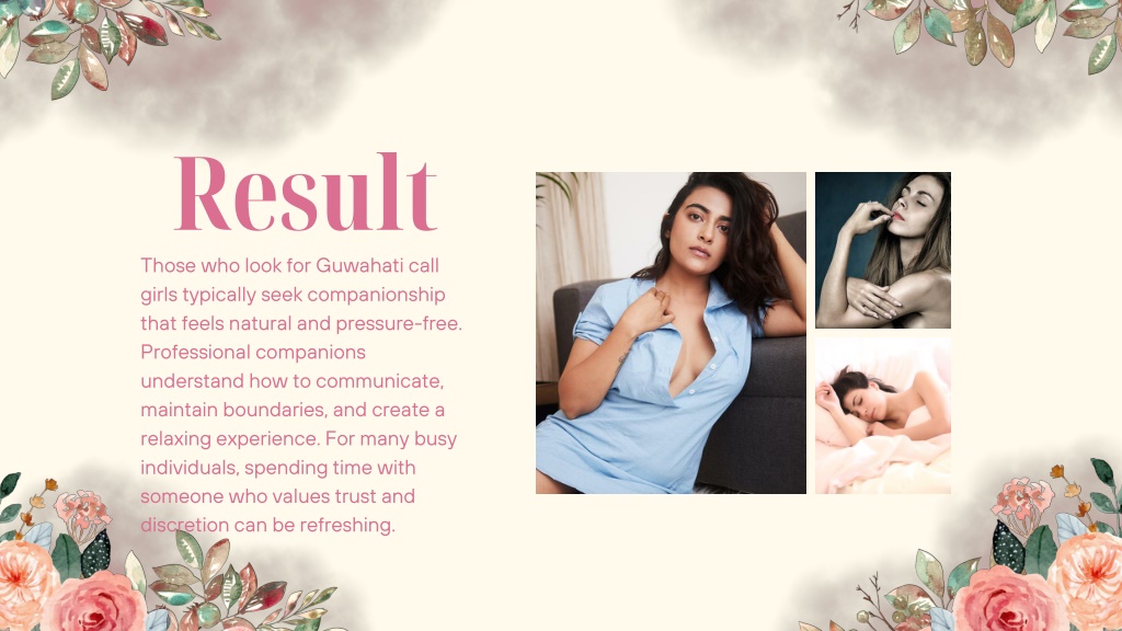 Result Those who look for Guwahati call girls typically seek companionship that feels natural and pressure-free. Professional companions understand how to communicate, maintain boundaries, and create a relaxing experience. For many busy individuals, spending time with someone who values trust and discretion can be refreshing.