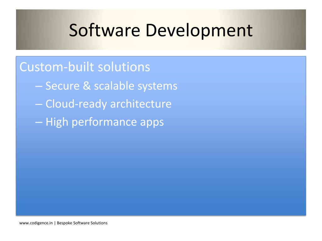 5. Software Development Custom-built solutions • Secure & scalable systems • Cloud-ready architecture • High performance apps www.codigence.in | Bespoke Software Solutions