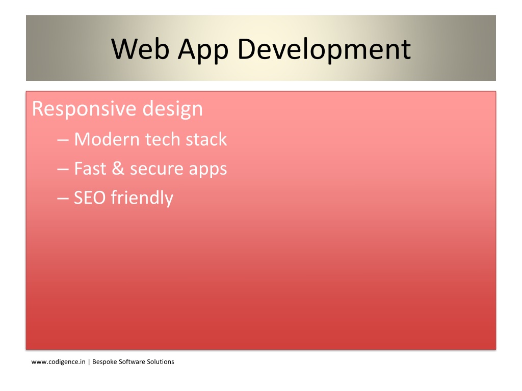 6. Web App Development Responsive design • Modern tech stack • Fast & secure apps • SEO friendly www.codigence.in | Bespoke Software Solutions