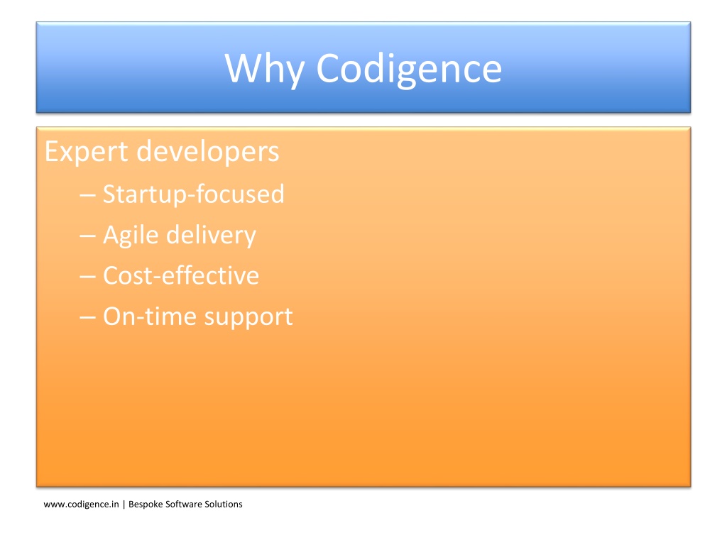 2. About Us Technology partner for startups • Expert developer team • Custom software specialists • Global delivery model www.codigence.in | Bespoke Software Solutions