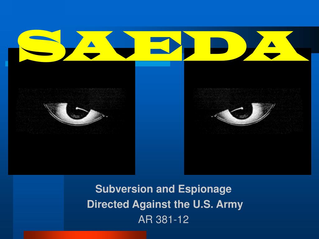 SAEDA Subversion and Espionage Directed Against the U.S. Army AR 381-12