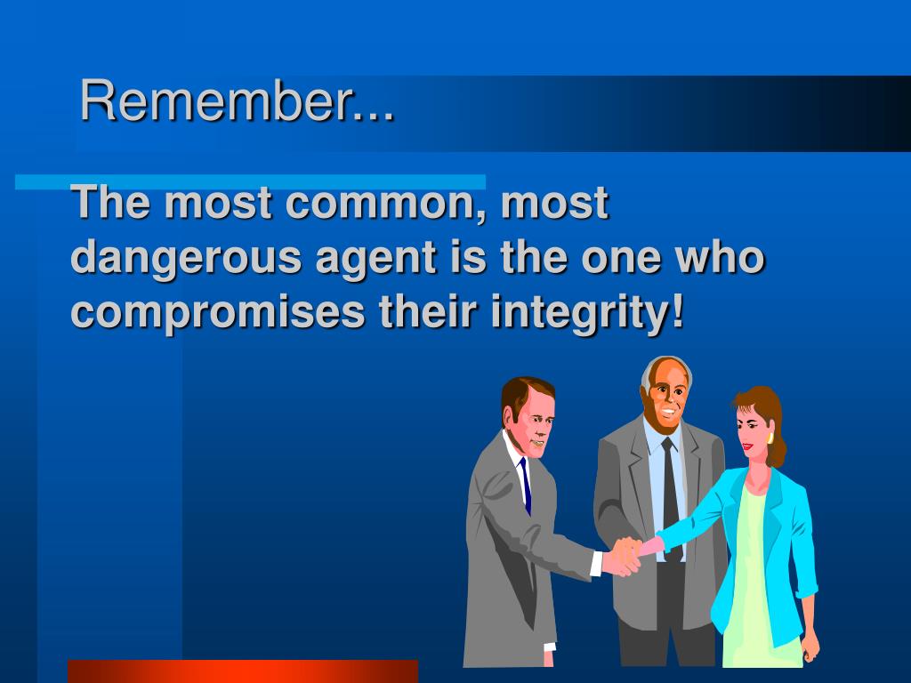Remember... The most common, most dangerous agent is the one who compromises their integrity!