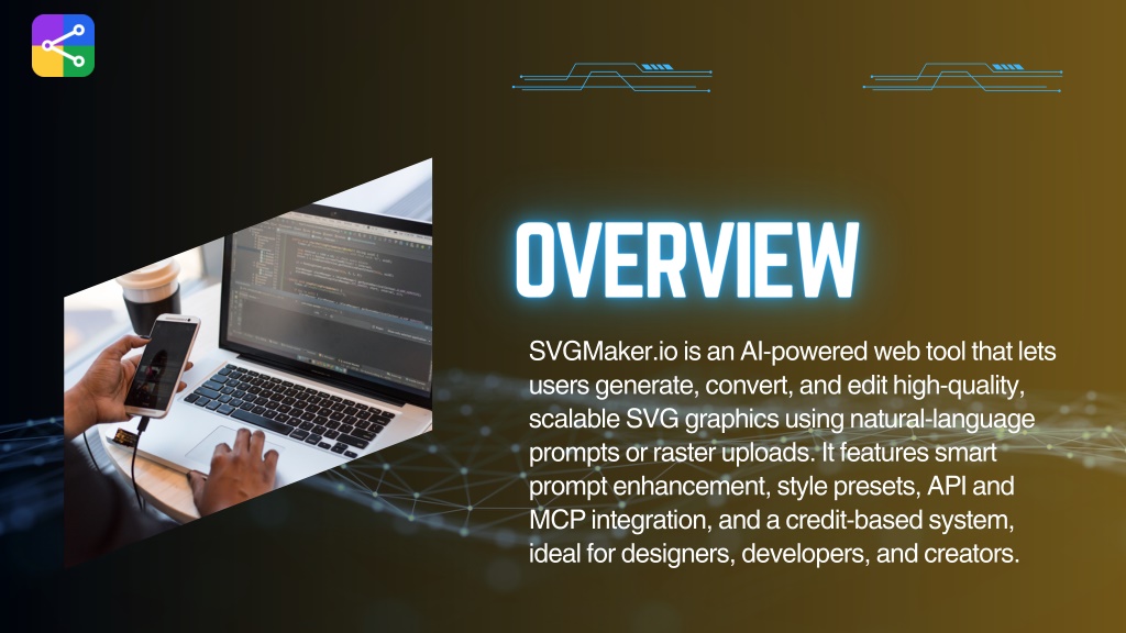 2. SVGMaker.io is an AI‑powered web tool that lets users generate, convert, and edit high‑quality, scalable SVG graphics using natural‑language prompts or raster uploads. It features smart prompt enhancement, style presets, API and MCP integration, and a credit‑based system, ideal for designers, developers, and creators.