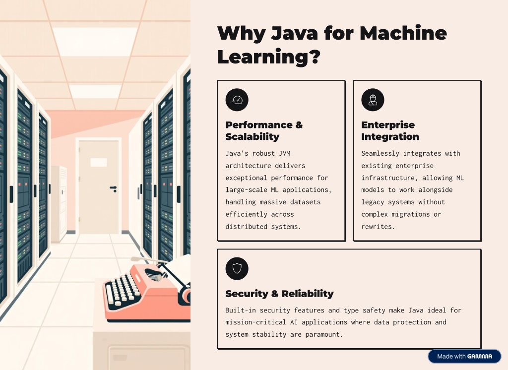 As the domains of machine learning (ML) and artificial intelligence (AI) continue to mature in enterprise environments, programming language choices are shifting from pure experimentation toward production-grade systems. In this evolution, the programming language Javau2014often overshadowed by the popularity of Python in research settingsu2014is reclaiming an important role.