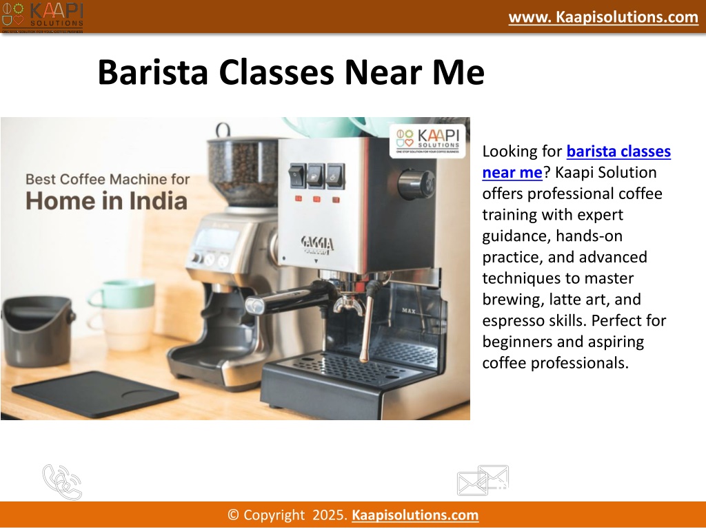 www. Kaapisolutions.com Barista Classes Near Me Looking for barista classes near me? Kaapi Solution offers professional coffee training with expert guidance, hands-on practice, and advanced techniques to master brewing, latte art, and espresso skills. Perfect for beginners and aspiring coffee professionals. support@gamethon.live +91- 80809-09980 +917042112297 info@kaapisolutions.com © Copyright 2025. Kaapisolutions.com