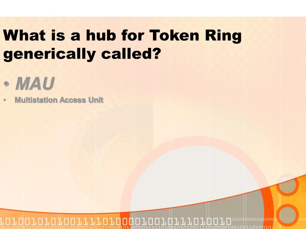 What is a hub for Token Ring generically called? • MAU • Multistation Access Unit