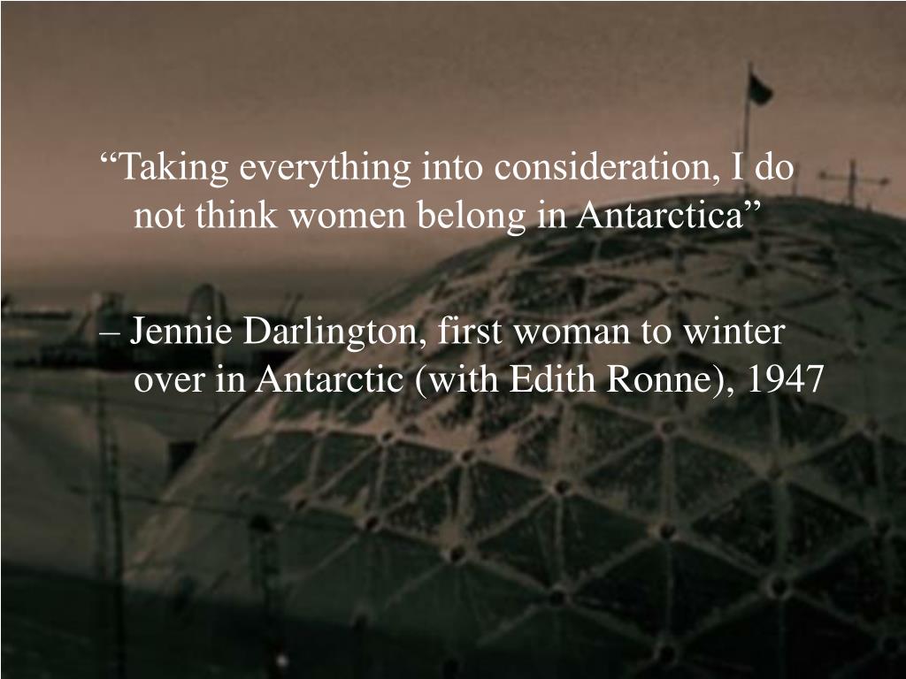 “Taking everything into consideration, I do not think women belong in Antarctica” – Jennie Darlington, first woman to winter over in Antarctic (with Edith Ronne), 1947