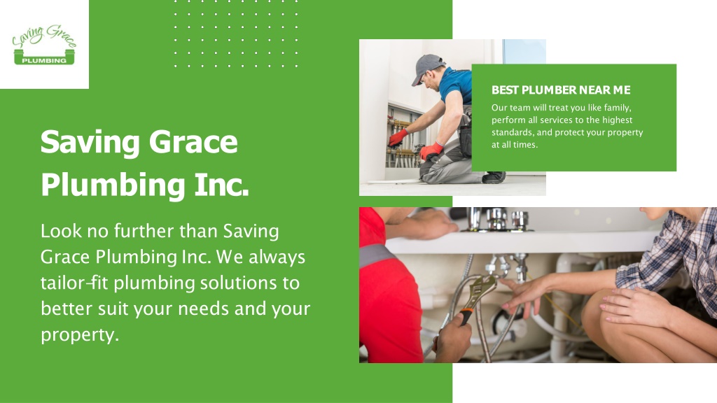 BEST PLUMBERNEARME Ourteamwilltreatyoulikefamily, perform all services to the highest standards,andprotectyourproperty atalltimes. Saving Grace PlumbingInc. LooknofurtherthanSaving GracePlumbingInc.Wealways tailor-fitplumbingsolutionsto bettersuityourneedsandyour property.