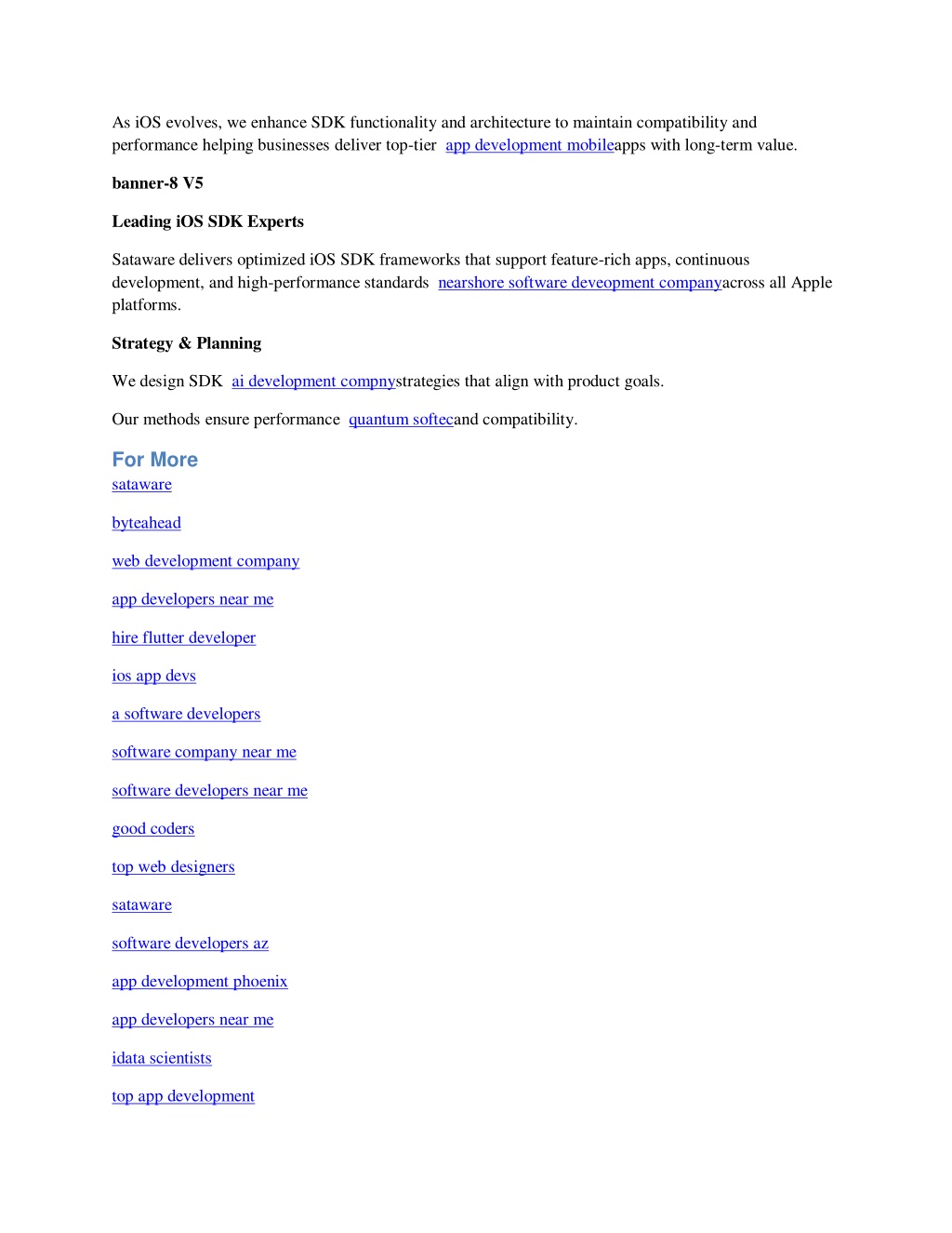 As iOS evolves, we enhance SDK functionality and architecture to maintain compatibility and performance helping businesses deliver top-tier app development mobileapps with long-term value. banner-8 V5 Leading iOS SDK Experts Sataware delivers optimized iOS SDK frameworks that support feature-rich apps, continuous development, and high-performance standards nearshore software deveopment companyacross all Apple platforms. Strategy & Planning We design SDK ai development compnystrategies that align with product goals. Our methods ensure performance quantum softecand compatibility. For More sataware byteahead web development company app developers near me hire flutter developer ios app devs a software developers software company near me software developers near me good coders top web designers sataware software developers az app development phoenix app developers near me idata scientists top app development