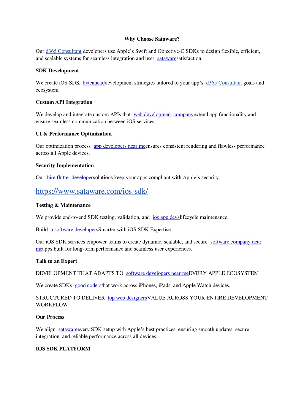 Why Choose Sataware? <br>Our d365 Consultant developers use Appleu2019s Swift and Objective-C SDKs to design flexible, efficient, and scalable systems for seamless integration and user satawaresatisfaction. <br>SDK Development <br>We create iOS SDK byteaheaddevelopment strategies tailored to your appu2019s d365 Consultant goals and ecosystem. <br>Custom API Integration <br>We develop and integrate custom APIs that web development companyextend app functionality and ensure seamless communication between iOS services.