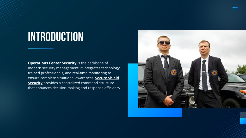 INTRODUCTION Operations Center Security is the backbone of modern security management. It integrates technology, trained professionals, and real-time monitoring to ensure complete situational awareness. Secure Shield Security provides a centralized command structure that enhances decision-making and response efficiency.