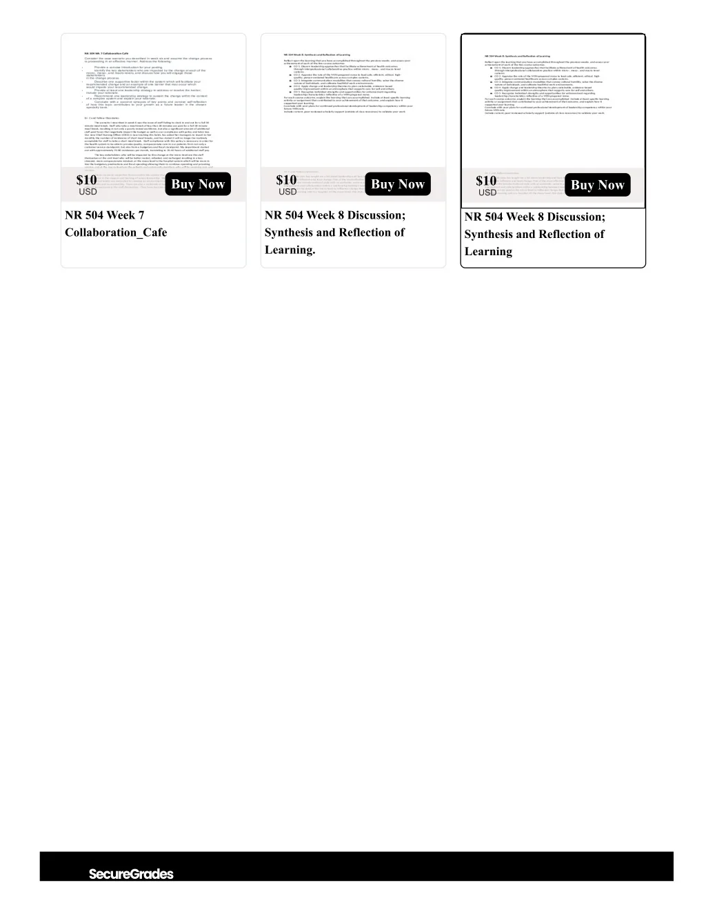 $10 USD $10 USD $10 USD Buy Now Buy Now Buy Now NR 504 Week 7 Collaboration_Cafe NR 504 Week 8 Discussion; Synthesis and Reflection of Learning. NR 504 Week 8 Discussion; Synthesis and Reflection of Learning SecureGrades