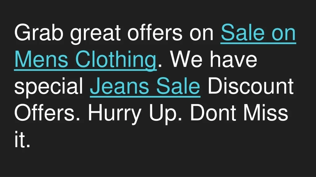 Grab great offers on Sale on Mens Clothing. We have special Jeans Sale Discount Offers. Hurry Up. Dont Miss it.