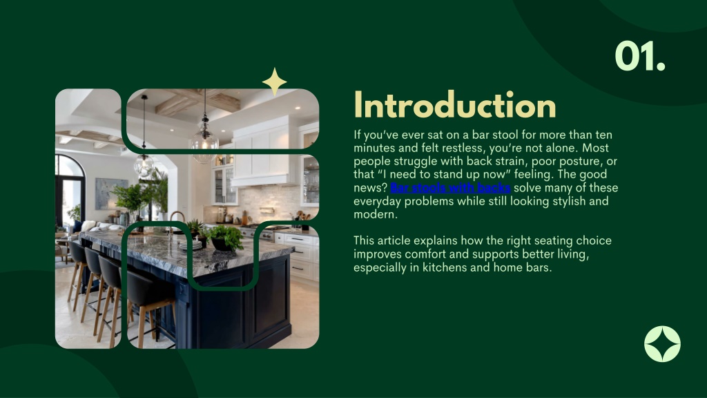 01. Introduction If you’ve ever sat on a bar stool for more than ten minutes and felt restless, you’re not alone. Most people struggle with back strain, poor posture, or that “I need to stand up now” feeling. The good news? Bar stools with backs solve many of these everyday problems while still looking stylish and modern. This article explains how the right seating choice improves comfort and supports better living, especially in kitchens and home bars.