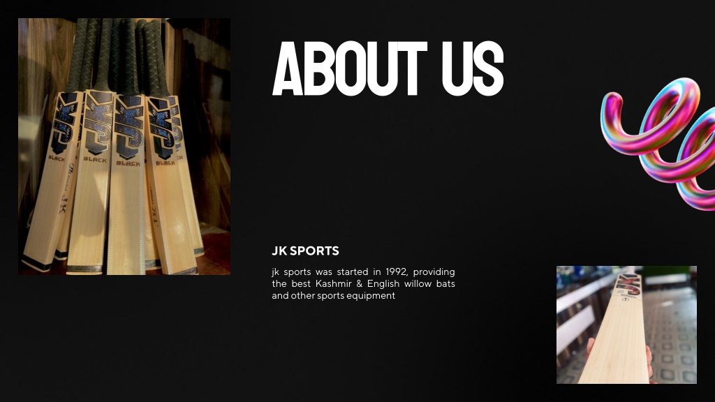 About us JK SPORTS jk sports was started in 1992, providing the best Kashmir & English willow bats and other sports equipment