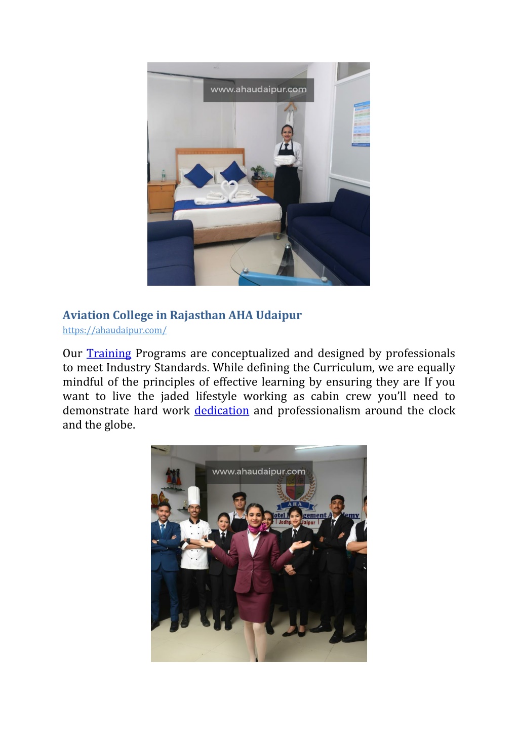 Aviation College in Rajasthan AHA Udaipur https://ahaudaipur.com/ Our Training Programs are conceptualized and designed by professionals to meet Industry Standards. While defining the Curriculum, we are equally mindful of the principles of effective learning by ensuring they are If you want to live the jaded lifestyle working as cabin crew you’ll need to demonstrate hard work dedication and professionalism around the clock and the globe.