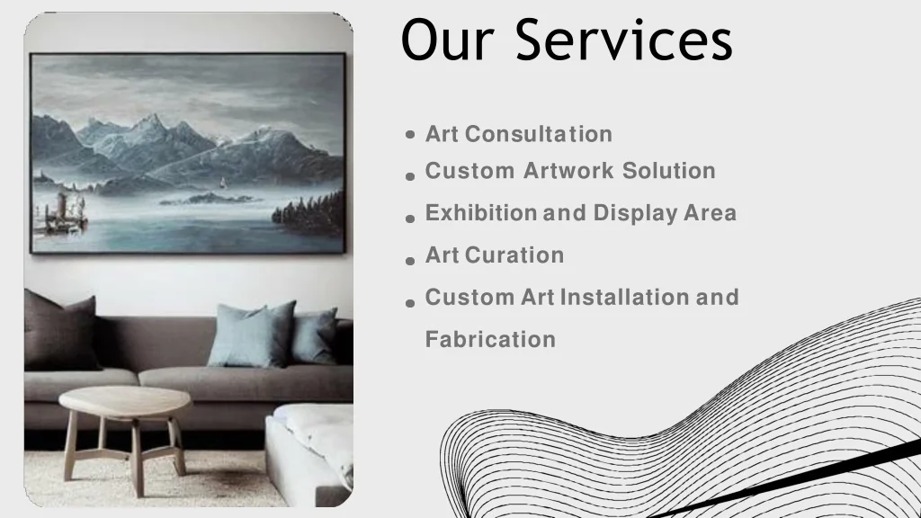 ArtConsultation Custom Artwork Solution ExhibitionandDisplayArea ArtCuration CustomArtInstallationand Fabrication OurServices