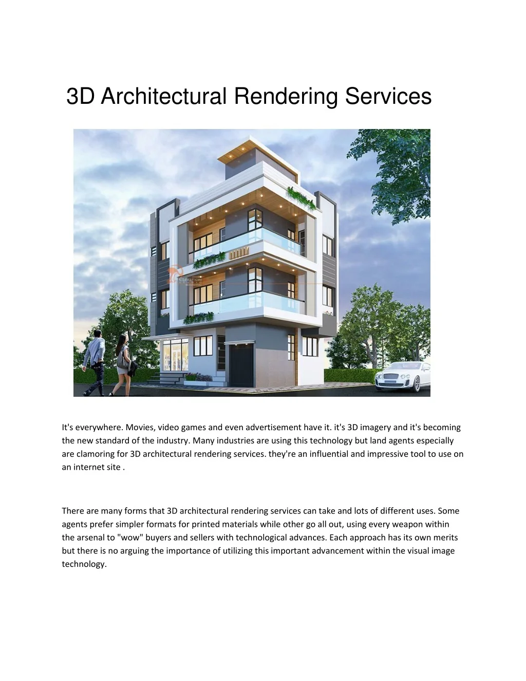 Best 3d Architectural Rendering Company: Best Quality Architectural 3D Rendering Services at Lowest Price. We provide 3D Rendering Services to Architects, Builders and Real Estate Company, etc.<br><br><br><br><br><br>