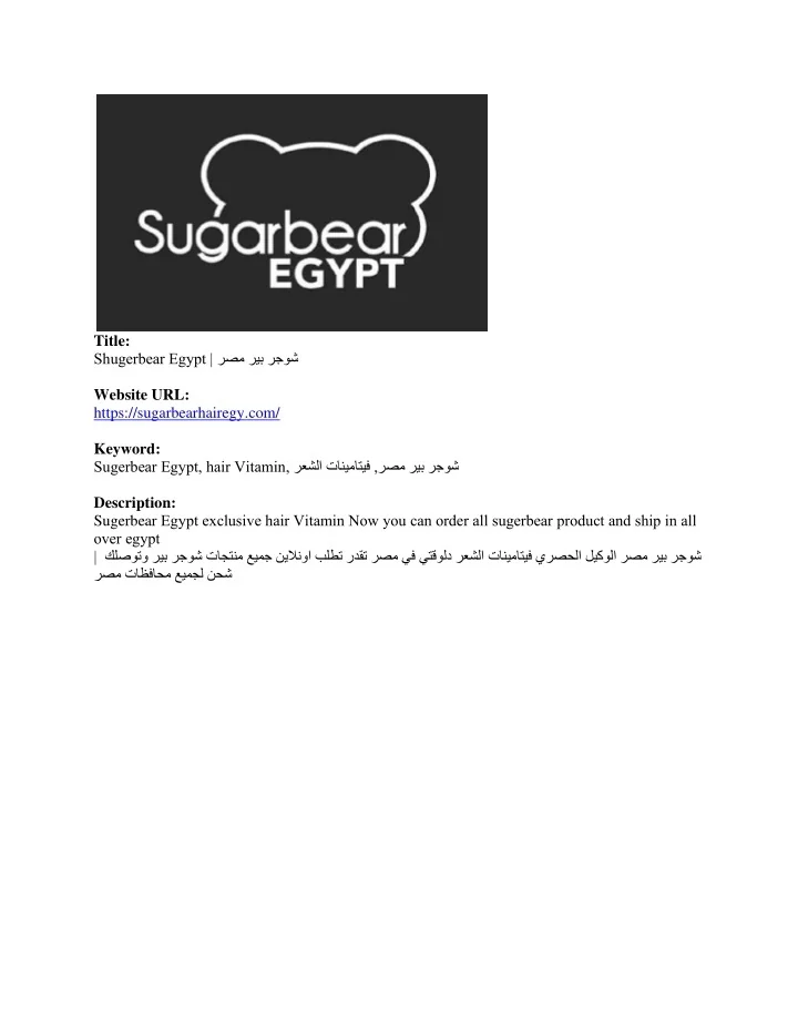Title: Shugerbear Egypt | رصم ريب رجوش Website URL: https://sugarbearhairegy.com/ Keyword: Sugerbear Egypt, hair Vitamin, رعشلا تانيماتيف ,رصم ريب رجوش Description: Sugerbear Egypt exclusive hair Vitamin Now you can order all sugerbear product and ship in all over egypt | كلصوتو ريب رجوش تاجتنم عيمج نيلانوا بلطت ردقت رصم يف يتقولد رعشلا تانيماتيف يرصحلا ليكولا رصم ريب رجوش رصم تاظفاحم عيمجل نحش