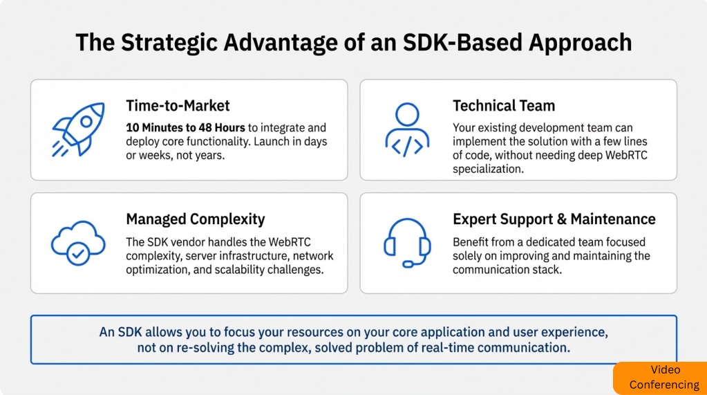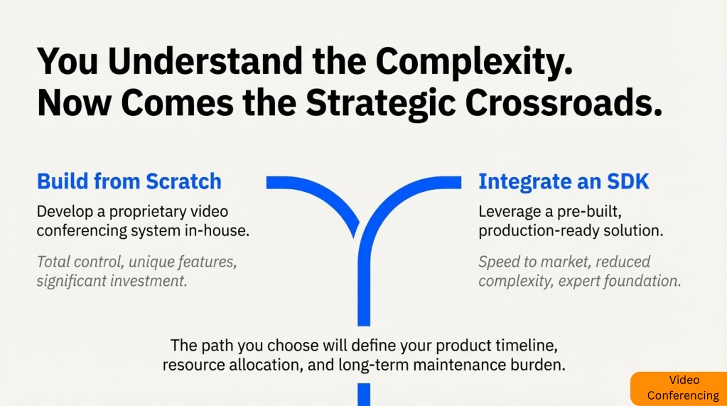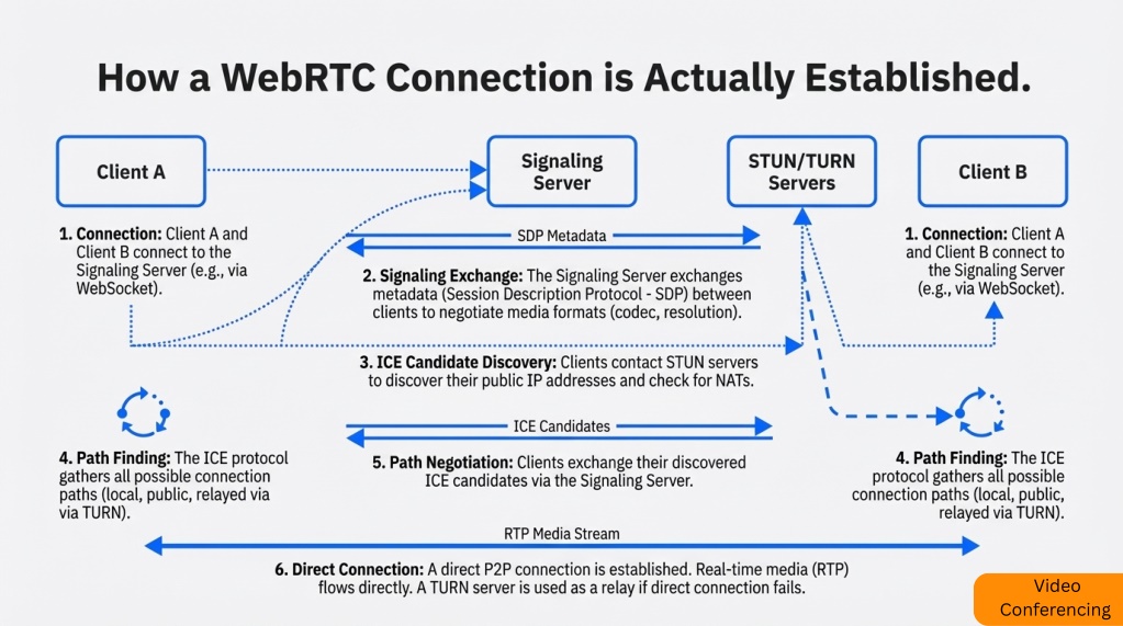 Video conferencing is internet-based communication that combines video, audio, and collaboration tools to enable real-time face-to-face interaction from anywhere.<br><br>For more, refer to this blog - https://www.mirrorfly.com/blog/how-video-conferencing-works/
