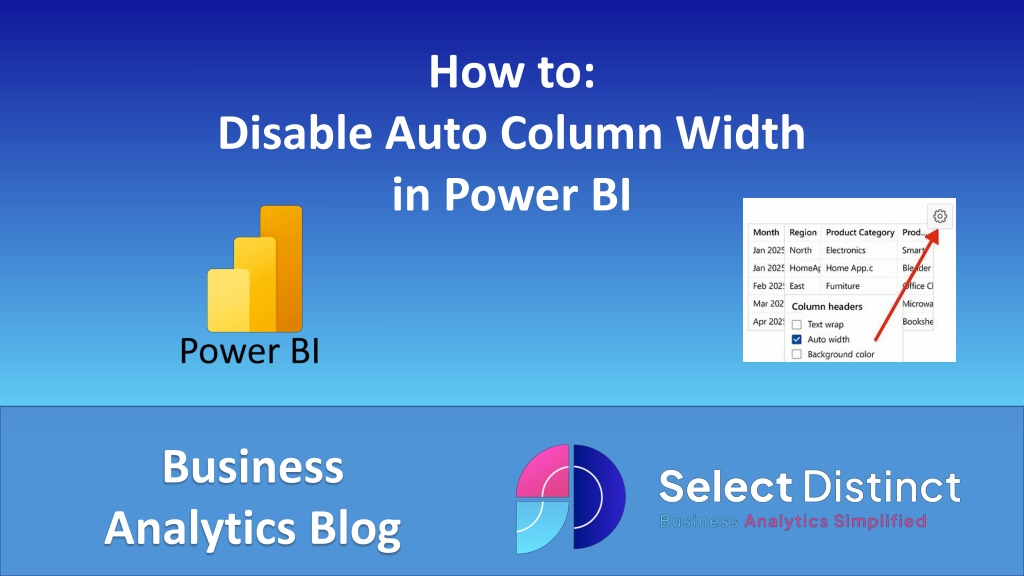Power BI Tutorial: Disable Auto Column Width for Cleaner Dashboards<br><br>Is your Power BI layout shifting unexpectedly when users interact with slicers or bookmarks? This presentation walks you through how to disable auto column width in tables and matrices u2014 a simple formatting fix that dramatically improves dashboard stability and visual polish.<br><br>Whatu2019s inside:<br><br>Why Power BI auto-resizes columns by default<br><br>How to manually lock column widths<br><br>Bookmark tips to preserve layout across interactions<br><br>Real-world examples of branded dashboard improvements<br><br>Perfect for analysts, dashboard designers,