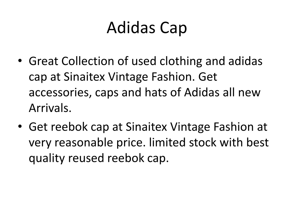 Best offer limited used clothing and adidas baseball caps at Sinaitex Vintage Fashion. Get accessories, Clothes, shoes of Adidas all new Arrivals.<br>