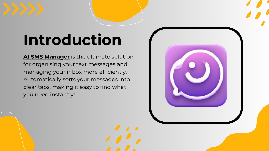 2. Introduction AI SMS Manager is the ultimate solution for organising your text messages and managing your inbox more efficiently. Automatically sorts your messages into clear tabs, making it easy to find what you need instantly!