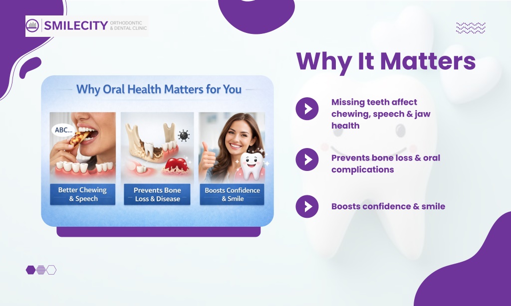 4. Why It Matters Missing teeth affect chewing, speech & jaw health Prevents bone loss & oral complications Boosts confidence & smile