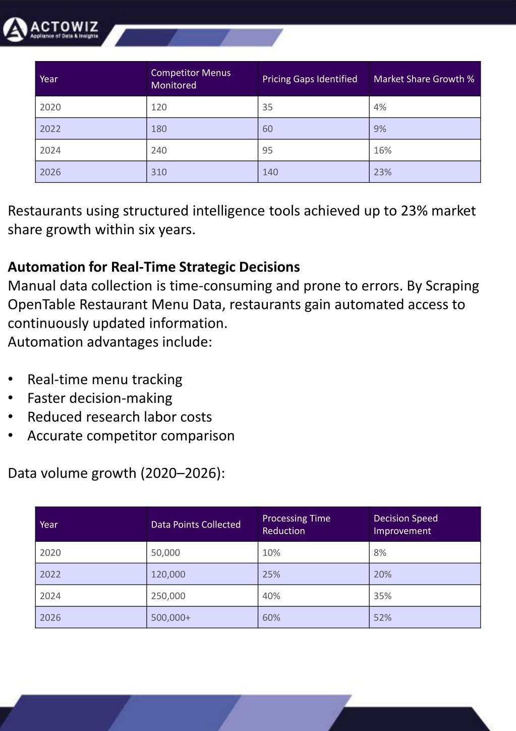 Conclusion The modern restaurant industry is powered by intelligence, not guesswork. Leveraging Web Scraping, Mobile App Scraping, and access to a Real-time dataset enables restaurants to stay ahead of trends, competitors, and shifting consumer preferences. The OpenTable Restaurant Menu Dataset provides deep visibility into pricing patterns, dish popularity, seasonal demand, and competitive positioning. Restaurants that integrate data-driven menu optimization strategies consistently achieve higher profitability, stronger brand positioning, and long-term growth. If you're ready to unlock menu success and increase revenue by 30%, Actowiz Solutions is here to help. You can also reach us for all your mobile app scraping, data collection, web scraping , and instant data scraper service requirements! Extracting Information from TripAdvisor: A Guide to Scraping Data from Hotels and Restaurants How to Effectively Use Competitor Price Trackers: Operational Guidance and Benefits How to Use Zomato API to Scrape Restaurant Data – A Detailed Guide What are Datasets? - A Comprehensive Guide Introduction Introduction This blog will provide a comprehensive overview of datasets, including their definition, different types of datasets, and strategies for maximizing the value of data. Leveraging the appropriate API makes scraping TripAdvisor on a large scale a straightforward task. You don't need to possess advanced computer skills to achieve this. Our comprehensive, step-by-step guide is designed to walk you through extracting data from TripAdvisor using a user-friendly web scraping tool. In the dynamic landscape of eCommerce, pricing strategy stands paramount, especially for digital storefronts. Modern consumers are discerning, often prioritizing price comparison as a pivotal step before purchasing. The allure of securing the best deals and most competitive prices drives this behavior. Consequently, a significant portion of online shoppers actively engage in price monitoring across various platforms. Recognizing this trend, online retailers must adeptly employ competitor price trackers to stay ahead. What is a Dataset? Introduction In the dynamic world of digital gastronomy, where culinary delights and dining experiences are increasingly explored and celebrated online, the demand for up-to-date restaurant data is insatiable. As food enthusiasts and businesses seek the latest insights into menus, reviews, and more, the Zomato API emerges as a powerful tool for scraping this invaluable information. TripAdvisor stands out as a powerhouse with an extensive database comprising over 8 million locations, 1 billion reviews, and support for 29 languages. As of 2022, when the cumulative reviews surpassed the one billion mark, it became evident that TripAdvisor's meticulous gaze would soon cover every restaurant, hotel, vacation rental, or attraction listing. By leveraging retail data scraping techniques, businesses can collect comprehensive retail data, offering insights into the broader market's pricing landscape. Such price intelligence empowers retailers to craft a robust pricing strategy, bolstering sales, enhancing profit margins, and fostering customer loyalty. Moreover, a data-driven eCommerce pricing approach ensures competitiveness, with dynamic pricing becoming increasingly prevalent. Unlocking the Potential: The Advantages of Scraping TripAdvisor Data Our comprehensive guide delves into the intricate art of utilizing the Zomato API to scrape restaurant data. Whether you're a restaurateur striving to understand your competitors, a food blogger searching for fresh content, or a data enthusiast eager to explore culinary trends, this guide will serve as your compass in the world of data extraction. In essence, utilizing a competent competitor price tracker facilitates effective pricing optimization and solidifies a retailer's position in the fiercely competitive eCommerce arena. Amidst TripAdvisor's vast sea of information lies a treasure trove awaiting extraction, analysis, and innovative presentation. For those in the tourism, hospitality, or travel sectors, harnessing TripAdvisor data proves invaluable for monitoring competitors and supporting strategic business decisions. The TripAdvisor Scraper facilitates seamless and rapid web scraping, offering the most straightforward route to consistently obtaining data at scale. This article delves into the myriad benefits of scraping TripAdvisor, shedding light on how this process can be initiated, including exploring the initial steps involving API utilization. Dive into the realm of data-driven insights with TripAdvisor scraping. We will navigate through the intricacies of Zomato Scraper, uncovering its capabilities to provide you with rich, real-time restaurant data. From scraping restaurant details to accessing customer reviews, our detailed guide ensures that you harness the full potential of this resource.
