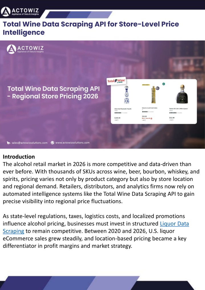 In a regulated market like alcohol retail, rapid price visibility is essential for maintaining competitiveness while ensuring compliance. • State-Level Bourbon and Whiskey Price Intelligence • Premium spirits categories such as bourbon and whiskey show strong regional price sensitivity. Businesses that Extract state-wise bourbon and whiskey prices gain visibility into demand patterns and tax-driven cost variations. • Between 2020–2026: • Bourbon demand increased 35% nationally • Premium whiskey pricing rose 22% • Regional supply shortages created 10–18% price spikes • State-level extraction helps companies: • Optimize regional marketing budgets • Identify high-demand clusters • Monitor premium segment pricing • Compare private-label competitiveness • Structured datasets enable smarter portfolio positioning and revenue forecasting. • How Actowiz Solutions Can Help? • Actowiz Solutions provides enterprise-grade solutions to Extract Total Wine & More Liquor Price Data with high accuracy and scalability. Our advanced APIs deliver store-level, region-specific, and SKU-level datasets tailored for analytics, benchmarking, and pricing optimization. • We build custom scraping infrastructures capable of handling high-volume requests, structured data normalization, and seamless integration into ERP and BI platforms. Our solutions ensure compliance, scalability, and real-time intelligence delivery for retailers, distributors, and analytics firms. Extracting Information from TripAdvisor: A Guide to Scraping Data from Hotels and Restaurants How to Effectively Use Competitor Price Trackers: Operational Guidance and Benefits How to Use Zomato API to Scrape Restaurant Data – A Detailed Guide What are Datasets? - A Comprehensive Guide Introduction Introduction This blog will provide a comprehensive overview of datasets, including their definition, different types of datasets, and strategies for maximizing the value of data. Leveraging the appropriate API makes scraping TripAdvisor on a large scale a straightforward task. You don't need to possess advanced computer skills to achieve this. Our comprehensive, step-by-step guide is designed to walk you through extracting data from TripAdvisor using a user-friendly web scraping tool. In the dynamic landscape of eCommerce, pricing strategy stands paramount, especially for digital storefronts. Modern consumers are discerning, often prioritizing price comparison as a pivotal step before purchasing. The allure of securing the best deals and most competitive prices drives this behavior. Consequently, a significant portion of online shoppers actively engage in price monitoring across various platforms. Recognizing this trend, online retailers must adeptly employ competitor price trackers to stay ahead. What is a Dataset? Introduction In the dynamic world of digital gastronomy, where culinary delights and dining experiences are increasingly explored and celebrated online, the demand for up-to-date restaurant data is insatiable. As food enthusiasts and businesses seek the latest insights into menus, reviews, and more, the Zomato API emerges as a powerful tool for scraping this invaluable information. TripAdvisor stands out as a powerhouse with an extensive database comprising over 8 million locations, 1 billion reviews, and support for 29 languages. As of 2022, when the cumulative reviews surpassed the one billion mark, it became evident that TripAdvisor's meticulous gaze would soon cover every restaurant, hotel, vacation rental, or attraction listing. By leveraging retail data scraping techniques, businesses can collect comprehensive retail data, offering insights into the broader market's pricing landscape. Such price intelligence empowers retailers to craft a robust pricing strategy, bolstering sales, enhancing profit margins, and fostering customer loyalty. Moreover, a data-driven eCommerce pricing approach ensures competitiveness, with dynamic pricing becoming increasingly prevalent. Unlocking the Potential: The Advantages of Scraping TripAdvisor Data Our comprehensive guide delves into the intricate art of utilizing the Zomato API to scrape restaurant data. Whether you're a restaurateur striving to understand your competitors, a food blogger searching for fresh content, or a data enthusiast eager to explore culinary trends, this guide will serve as your compass in the world of data extraction. In essence, utilizing a competent competitor price tracker facilitates effective pricing optimization and solidifies a retailer's position in the fiercely competitive eCommerce arena. Amidst TripAdvisor's vast sea of information lies a treasure trove awaiting extraction, analysis, and innovative presentation. For those in the tourism, hospitality, or travel sectors, harnessing TripAdvisor data proves invaluable for monitoring competitors and supporting strategic business decisions. The TripAdvisor Scraper facilitates seamless and rapid web scraping, offering the most straightforward route to consistently obtaining data at scale. This article delves into the myriad benefits of scraping TripAdvisor, shedding light on how this process can be initiated, including exploring the initial steps involving API utilization. Dive into the realm of data-driven insights with TripAdvisor scraping. We will navigate through the intricacies of Zomato Scraper, uncovering its capabilities to provide you with rich, real-time restaurant data. From scraping restaurant details to accessing customer reviews, our detailed guide ensures that you harness the full potential of this resource.