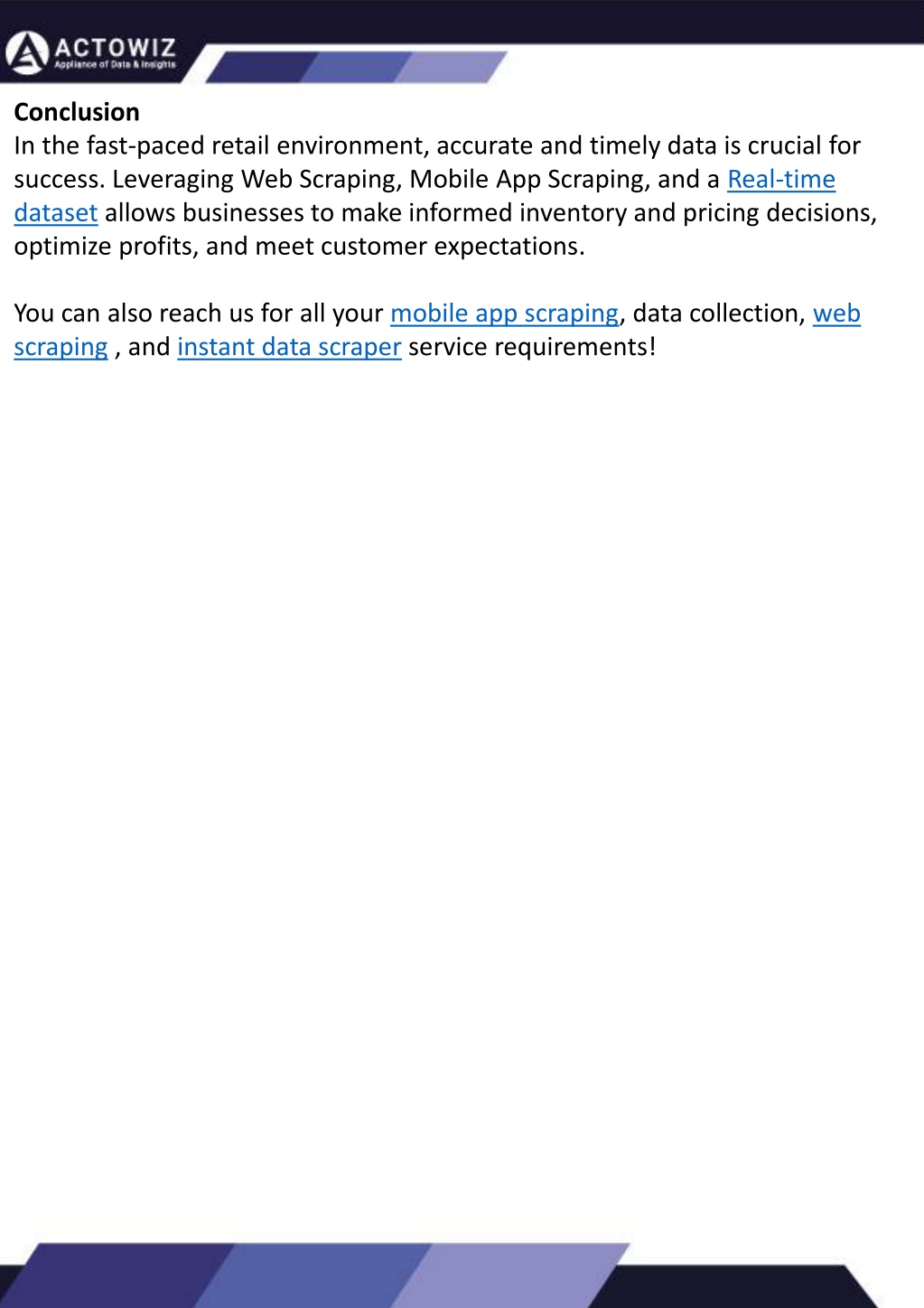 Comprehensive Dataset Insights Extracting Information from TripAdvisor: A Guide to A complete dataset is key to strategic decisions. Adidas Product Availability and Pricing Dataset enables retailers to combine inventory, pricing, catalog, How to Effectively Use Competitor Price Trackers: Operational Guidance and Benefits Detailed Guide How to Use Zomato API to Scrape Restaurant Data – A What are Datasets? - A Comprehensive Guide Scraping Data from Hotels and Restaurants and review data into a single actionable resource. Year Data Points Collected Insights Accuracy (%) Applications Basic inventory planning 2020 100,000 80 Dynamic pricing for seasonal trends 2021 150,000 82 SKU-level sales predictions 2022 200,000 85 Marketing campaign optimization 2023 250,000 87 Competitor benchmarking 2024 300,000 90 Inventory allocation efficiency 2025 350,000 92 Full-scale real-time business intelligence 2026 400,000 95 Introduction Introduction This blog will provide a comprehensive overview of datasets, including their definition, different types of datasets, and strategies for maximizing the value of data. What is a Dataset? web scraping tool. TripAdvisor stands out as a powerhouse with an extensive database comprising over 8 million locations, 1 billion reviews, and support for 29 languages. As of 2022, when the cumulative reviews surpassed the one billion mark, it became evident that TripAdvisor's meticulous gaze would soon cover every restaurant, hotel, vacation rental, or attraction listing. Unlocking the Potential: The Advantages of Scraping TripAdvisor Data we offer real-time insights into pricing, availability, customer sentiment, and catalog changes. Our services, including Web Scraping and Mobile App Scraping, empower businesses to optimize inventory, pricing strategies, and marketing campaigns, ensuring a competitive edge in the dynamic retail landscape. Leveraging the appropriate API makes scraping TripAdvisor on a large scale a straightforward task. You don't need to possess advanced computer skills to achieve this. Our comprehensive, step-by- step guide is designed to walk you through extracting data from TripAdvisor using a user-friendly In the dynamic landscape of eCommerce, pricing strategy stands paramount, especially for digital storefronts. Modern consumers are discerning, often prioritizing price comparison as a pivotal step before purchasing. The allure of securing the best deals and most competitive prices drives this behavior. Consequently, a significant portion of online shoppers actively engage in price monitoring across various platforms. Recognizing this trend, online retailers must adeptly employ competitor price trackers to stay ahead. are increasingly explored and celebrated online, the demand for up-to-date restaurant data is insatiable. As food enthusiasts and businesses seek the latest insights into menus, reviews, and more, the Zomato API emerges as a powerful tool for scraping this invaluable information. Actowiz Solutions provides advanced scraping and data analytics solutions for retailers. Using Adidas Data Scraping API and Web Scraping Adidas SKU Data, Leveraging Adidas Product Availability and Pricing Dataset, businesses can Introduction anticipate demand, optimize warehouse operations, and ensure high sales In the dynamic world of digital gastronomy, where culinary delights and dining experiences performance with minimal stock issues. By leveraging retail data scraping techniques, businesses can collect comprehensive retail data, offering insights into the broader market's pricing landscape. Such price intelligence empowers retailers to craft a robust pricing strategy, bolstering sales, enhancing profit margins, and fostering customer loyalty. Moreover, a data-driven eCommerce pricing approach ensures competitiveness, with dynamic pricing becoming increasingly prevalent. Our comprehensive guide delves into the intricate art of utilizing the Zomato API to scrape restaurant data. Whether you're a restaurateur striving to understand your competitors, a food blogger searching for fresh content, or a data enthusiast eager to explore culinary trends, this guide will serve as your compass in the world of data extraction. Amidst TripAdvisor's vast sea of information lies a treasure trove awaiting extraction, analysis, and innovative presentation. For those in the tourism, hospitality, or travel sectors, harnessing TripAdvisor data proves invaluable for monitoring competitors and supporting strategic business decisions. The TripAdvisor Scraper facilitates seamless and rapid web scraping, offering the most straightforward route to consistently obtaining data at scale. This article delves into the myriad benefits of scraping TripAdvisor, shedding light on how this process can be initiated, including exploring the initial steps involving API utilization. Dive into the realm of data-driven insights with TripAdvisor scraping. How Actowiz Solutions Can Help? In essence, utilizing a competent competitor price tracker facilitates effective pricing optimization and solidifies a retailer's position in the fiercely competitive eCommerce arena. We will navigate through the intricacies of Zomato Scraper, uncovering its capabilities to provide you with rich, real-time restaurant data. From scraping restaurant details to accessing customer reviews, our detailed guide ensures that you harness the full potential of this resource.