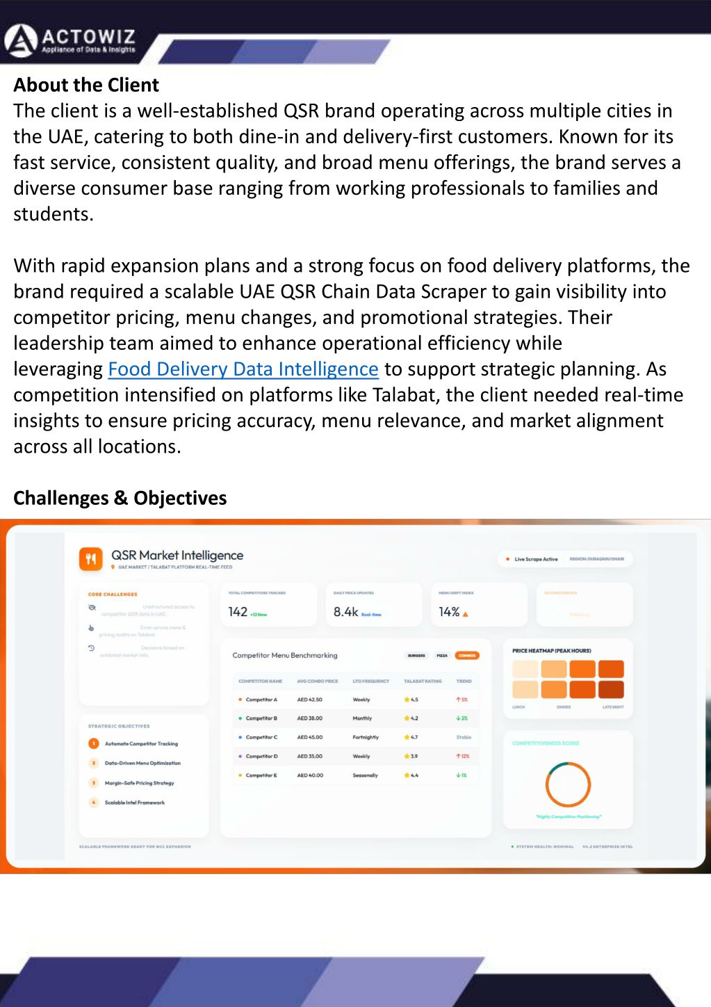 About the Client Extracting Information from TripAdvisor: A Guide to The client is a well-established QSR brand operating across multiple cities in the UAE, catering to both dine-in and delivery-first customers. Known for its How to Effectively Use Competitor Price Trackers: Operational Guidance and Benefits Detailed Guide diverse consumer base ranging from working professionals to families and students. How to Use Zomato API to Scrape Restaurant Data – A What are Datasets? - A Comprehensive Guide Scraping Data from Hotels and Restaurants fast service, consistent quality, and broad menu offerings, the brand serves a With rapid expansion plans and a strong focus on food delivery platforms, the brand required a scalable UAE QSR Chain Data Scraper to gain visibility into competitor pricing, menu changes, and promotional strategies. Their leadership team aimed to enhance operational efficiency while leveraging Food Delivery Data Intelligence to support strategic planning. As competition intensified on platforms like Talabat, the client needed real-time insights to ensure pricing accuracy, menu relevance, and market alignment across all locations. Challenges & Objectives Introduction Introduction This blog will provide a comprehensive overview of datasets, including their definition, different types of datasets, and strategies for maximizing the value of data. What is a Dataset? web scraping tool. TripAdvisor stands out as a powerhouse with an extensive database comprising over 8 million locations, 1 billion reviews, and support for 29 languages. As of 2022, when the cumulative reviews surpassed the one billion mark, it became evident that TripAdvisor's meticulous gaze would soon cover every restaurant, hotel, vacation rental, or attraction listing. Unlocking the Potential: The Advantages of Scraping TripAdvisor Data Leveraging the appropriate API makes scraping TripAdvisor on a large scale a straightforward task. You don't need to possess advanced computer skills to achieve this. Our comprehensive, step-by- step guide is designed to walk you through extracting data from TripAdvisor using a user-friendly In the dynamic landscape of eCommerce, pricing strategy stands paramount, especially for digital storefronts. Modern consumers are discerning, often prioritizing price comparison as a pivotal step before purchasing. The allure of securing the best deals and most competitive prices drives this behavior. Consequently, a significant portion of online shoppers actively engage in price monitoring across various platforms. Recognizing this trend, online retailers must adeptly employ competitor price trackers to stay ahead. are increasingly explored and celebrated online, the demand for up-to-date restaurant data is insatiable. As food enthusiasts and businesses seek the latest insights into menus, reviews, and more, the Zomato API emerges as a powerful tool for scraping this invaluable information. Introduction In the dynamic world of digital gastronomy, where culinary delights and dining experiences By leveraging retail data scraping techniques, businesses can collect comprehensive retail data, offering insights into the broader market's pricing landscape. Such price intelligence empowers retailers to craft a robust pricing strategy, bolstering sales, enhancing profit margins, and fostering customer loyalty. Moreover, a data-driven eCommerce pricing approach ensures competitiveness, with dynamic pricing becoming increasingly prevalent. Our comprehensive guide delves into the intricate art of utilizing the Zomato API to scrape restaurant data. Whether you're a restaurateur striving to understand your competitors, a food blogger searching for fresh content, or a data enthusiast eager to explore culinary trends, this guide will serve as your compass in the world of data extraction. Amidst TripAdvisor's vast sea of information lies a treasure trove awaiting extraction, analysis, and innovative presentation. For those in the tourism, hospitality, or travel sectors, harnessing TripAdvisor data proves invaluable for monitoring competitors and supporting strategic business decisions. The TripAdvisor Scraper facilitates seamless and rapid web scraping, offering the most straightforward route to consistently obtaining data at scale. This article delves into the myriad benefits of scraping TripAdvisor, shedding light on how this process can be initiated, including exploring the initial steps involving API utilization. Dive into the realm of data-driven insights with TripAdvisor scraping. In essence, utilizing a competent competitor price tracker facilitates effective pricing optimization and solidifies a retailer's position in the fiercely competitive eCommerce arena. We will navigate through the intricacies of Zomato Scraper, uncovering its capabilities to provide you with rich, real-time restaurant data. From scraping restaurant details to accessing customer reviews, our detailed guide ensures that you harness the full potential of this resource.