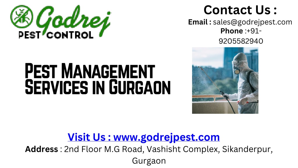 Contact Us : • Email : sales@godrejpest.com • Phone :+91-9205582940 • Pest Management Services in Gurgaon • Visit Us :www.godrejpest.com • Address : 2nd Floor M.G Road, Vashisht Complex, Sikanderpur, Gurgaon