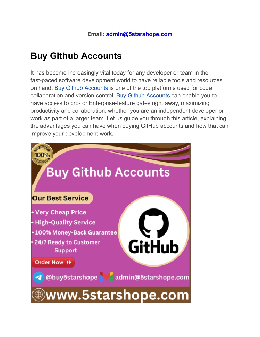 Email: admin@5starshope.com Buy Github Accounts It has become increasingly vital today for any developer or team in the fast-paced software development world to have reliable tools and resources on hand. Buy Github Accounts is one of the top platforms used for code collaboration and version control. Buy Github Accounts can enable you to have access to pro- or Enterprise-feature gates right away, maximizing productivity and collaboration, whether you are an independent developer or work as part of a larger team. Let us guide you through this article, explaining the advantages you can have when buying GitHub accounts and how that can improve your development work.