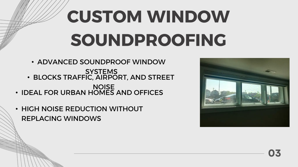 4. CUSTOM WINDOW SOUNDPROOFING • ADVANCED SOUNDPROOF WINDOW SYSTEMS • BLOCKS TRAFFIC, AIRPORT, AND STREET NOISE • IDEAL FOR URBAN HOMES AND OFFICES • HIGH NOISE REDUCTION WITHOUT REPLACING WINDOWS 03