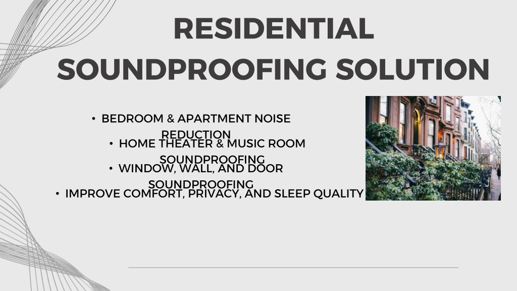 2. RESIDENTIAL SOUNDPROOFING SOLUTION • BEDROOM & APARTMENT NOISE REDUCTION • HOME THEATER & MUSIC ROOM SOUNDPROOFING • WINDOW, WALL, AND DOOR SOUNDPROOFING • IMPROVE COMFORT, PRIVACY, AND SLEEP QUALITY