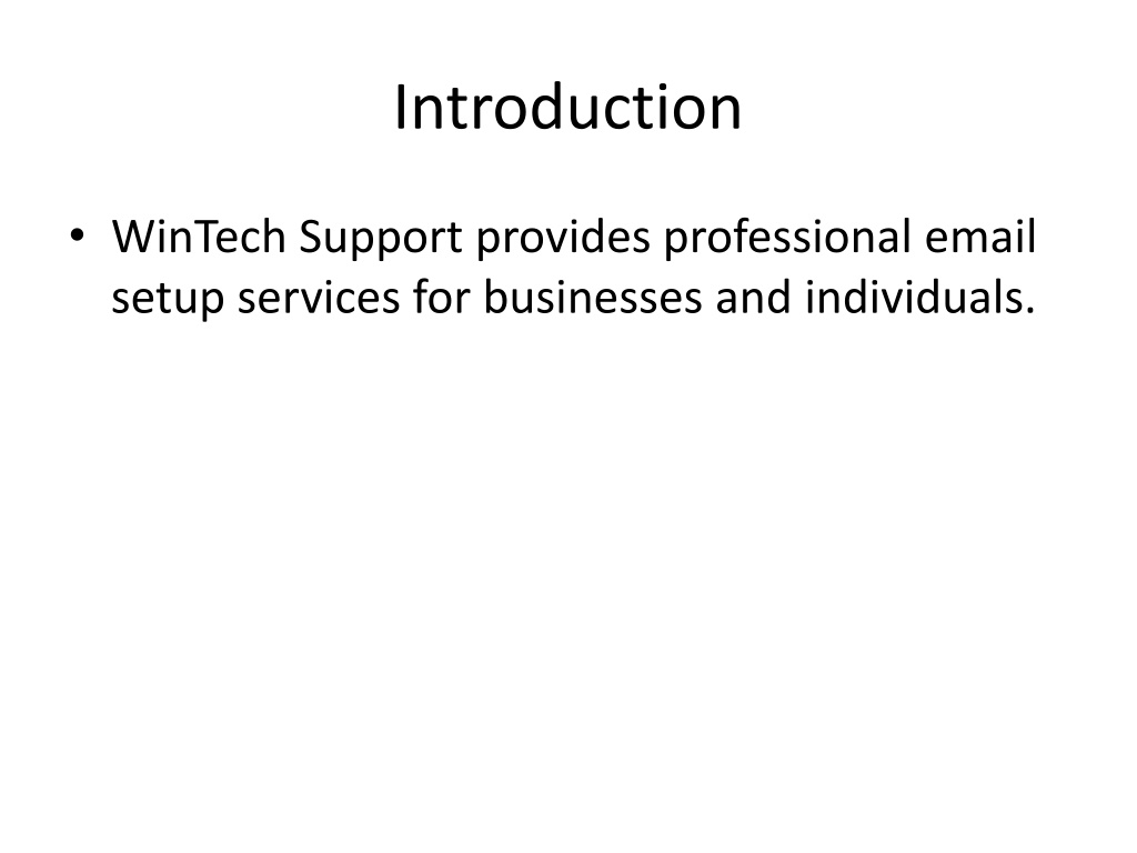 Introduction • WinTech Support provides professional email setup services for businesses and individuals.