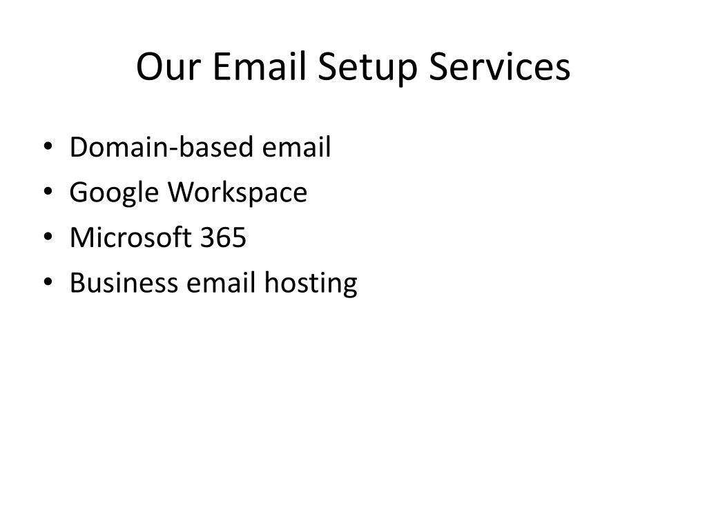 Our Email Setup Services • Domain-based email • Google Workspace • Microsoft 365 • Business email hosting