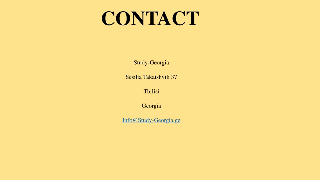 CONTACT Study-Georgia SesiliaTakaishvili 37 Tbilisi Georgia Info@Study-Georgia.ge