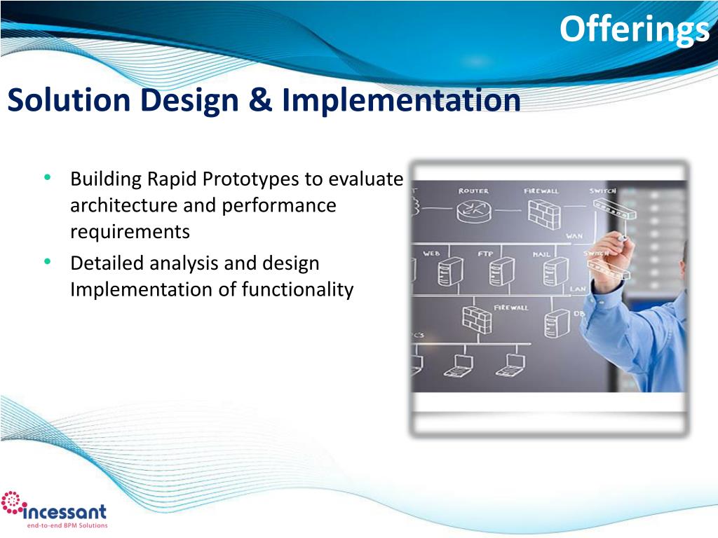 Offerings Solution Design & Implementation • Building Rapid Prototypes to evaluate architecture and performance requirements • Detailed analysis and design Implementation of functionality