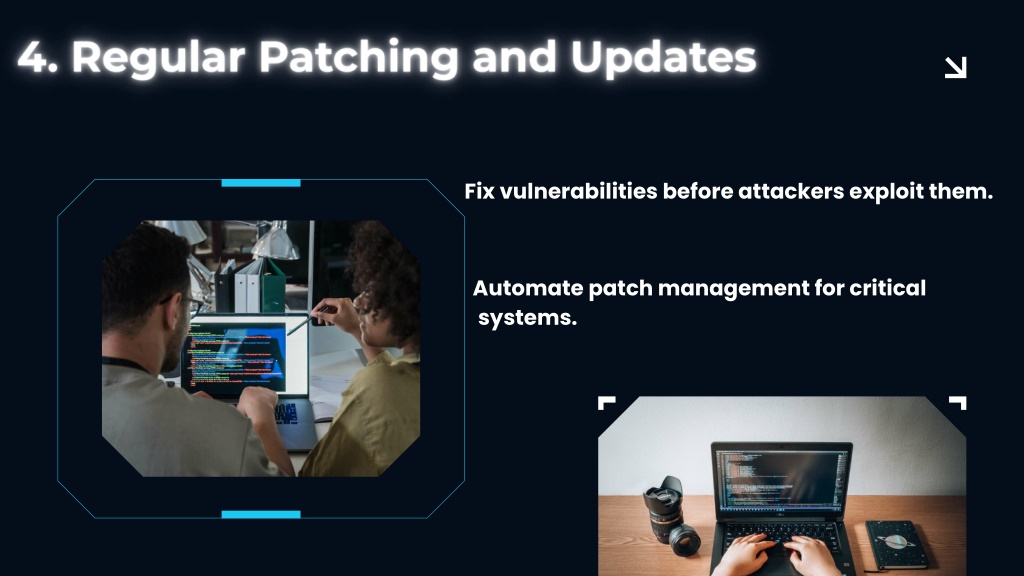Fix vulnerabilities before attackers exploit them. Automate patch management for critical systems.