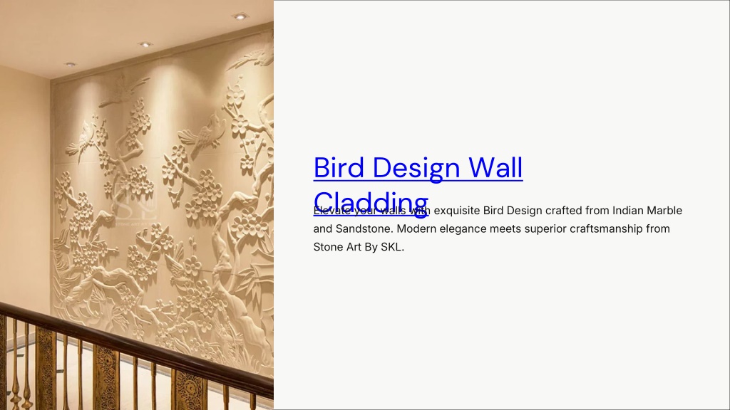 1. Bird Design Wall Cladding Elevate your walls with exquisite Bird Design crafted from Indian Marble and Sandstone. Modern elegance meets superior craftsmanship from Stone Art By SKL.