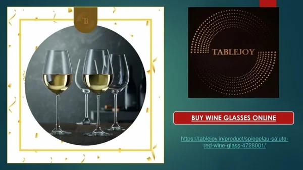 TableJoy is the best place to buy wine glasses online, as it curates its collection from the worldu2019s leading brands. Its stylish and functional designs will complement your drinking experience at its best. Visit the store and choose your favourite glasses from all your preferred brands<br><br>https://tablejoy.in/product/spiegelau-salute-red-wine-glass-4728001/<br><br>Address :- GF-06, Ground floor, Worldmark, Sector 65, Gurugram u2013 122001<br>Tel: 91 98183 54306<br>