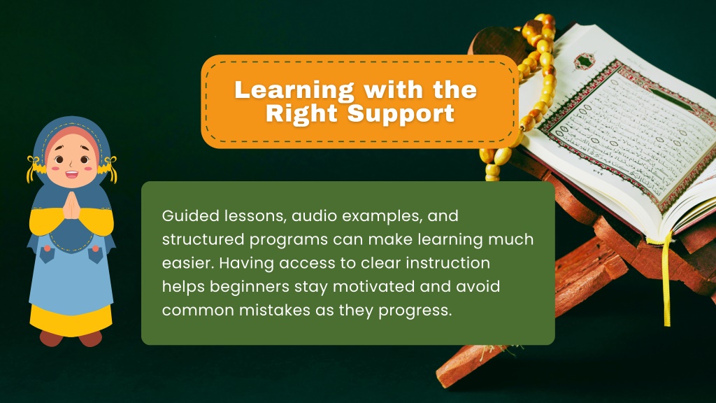 This presentation is designed for beginners who are starting their journey in reading the Quran. It highlights common challenges, foundational steps, and practical guidance to help learners build confidence and clarity over time. The focus is on understanding, correct pronunciation, and steady practice in a supportive learning approach.