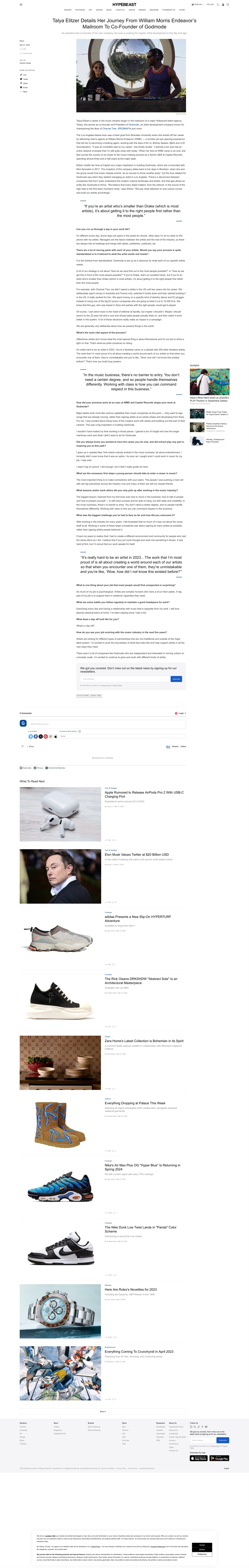ENGLISH ENGLISH FOLLOW FOLLOW FASHION FASHION FOOTWEAR FOOTWEAR ART ART DESIGN DESIGN MUSIC MUSIC LIFESTYLE LIFESTYLE VIDEOS VIDEOS BRANDS BRANDS MAGAZINE MAGAZINE HYPEBEAST100 HYPEBEAST100 STORE STORE Talya Elitzer Details Her Journey From William Morris Endeavor’s Mailroom To Co-Founder of Godmode As president and co-founder of her own company, the exec is pushing for organic artist development in this day and age. Music Mar 27, 2023 3.2K 0 Comments TEXT BY Sophie Caraan SHARE THIS ARTICLE Link Tweet Share Email More Michael Terido Talya Elitzer’s career in the music industry began in the mailroom of a major Hollywood talent agency. Today, she serves as co-founder and President of Godmode, an artist development company known for championing the likes of Channel Tres, JPEGMAFIA and more. The Los Angeles-based exec was a fresh grad from Brandeis University when she kicked off her career by delivering mail to agents at William Morris Endeavor (WME) — a humble yet eye-opening experience that led her to becoming a booking agent, working with the likes of M.I.A, Britney Spears, Björk and LCD Soundsystem. “It was an incredible start to my career,” she fondly recalls. “I learned a ton and met an entire network of people that I’m still quite close with today.” When her time at WME came to an end, she flew across the country to be closer to the music-making process as a Senior A&R at Capitol Records, spending almost three and a half years at the major label. Elitzer credits her time at Capitol as a major inspiration in building Godmode, which she co-founded with Nick Sylvester in 2017. The inception of the company dates back to her days in Brooklyn, when she and her group would host music release events “as an excuse to throw another party,” but the true catalyst for Godmode was when they started managing an artist in Los Angeles. There’s a disconnect between companies that don’t quite understand the modern cultural landscape and artists, and that gap allows an entity like Godmode to thrive. “We believe that every detail matters, from the artwork, to the sound of the high hats to the first team members hired,” says Elitzer. “We pay close attention to how culture moves and build our artists accordingly.” “If you’re an artist who’s smaller than Drake (which is most artists), it’s about getting it to the right people first rather than the most people.” Can you run us through a day in your work life? It’s different every day. Some days are spent in the studio for shoots, other days I’m at my desk on the phone with my artists. Managers are the liaison between the artists and the rest of the industry, so there are always lots of meetings and hangs with labels, publishers, publicists, etc. There are a lot of moving parts with each of your artists. Would you say your process is quite standardized or is it tailored to what the artist wants and needs? It is the furthest from standardized. Godmode is set up as a resource for what each of our specific artists needs. A lot of our strategy is not about “How do we send this out to the most people possible?” or “How do we get this in front of the most people possible?” If you’re Drake, that’s an excellent tactic, but if you’re an artist who’s smaller than Drake (which is most artists), it’s about getting it to the right people first rather than the most people. For example, with Channel Tres, we didn’t spend a dollar in the US until two years into his career. We deliberately spent money in Australia and France only, watched it trickle down and then started building it in the US. It really worked for him. We spent money on a specific kind of sketchy dance and DJ plugger, instead of using one of the big DJ promo companies who are going to blast it out to 10,000 DJs. We knew that this guy, who was based in Ibiza and parties with the right people, would get it played. Of course, I can send music to the head of editorial at Spotify, but maybe I shouldn’t. Maybe I should send it to the 22-year-old who’s cool and whose taste people actually listen to, and then watch it work better in the system. A lot of these decisions really make an impact in a campaign. We are generally very deliberate about how we present things in the world. What’s the most vital aspect of the process? Oftentimes artists don’t know what the most special thing is about themselves and it’s our job to shine a light on that. That’s what we pride ourselves on doing. It’s really hard to be an artist in 2023. You’re a faceless name on a playlist with 200 other faceless artists. The work that I’m most proud of is all about creating a world around each of our artists so that when you encounter one of them, they’re unmistakable and you’re like, “Wow, how did I not know this existed before?” That’s how you build long careers. Spotlights “In the music business, there’s no barrier to entry. You don’t need a certain degree, and so people handle themselves differently. Working with class is how you can command respect in this business.” Here’s What Went Down at LEGO®’s PLAY Pavilion In Serpentine Gallery How did your previous work as an exec at WME and Capitol Records shape your work at Presented by The LEGO Group Godmode? Netflix Drops Final Trailer for 'Squid Game' Season 3 Major labels work more like venture capitalists than music companies at this point — they want to sign songs that are already moving, rather than signing artists at an earlier phase and developing from there. For me, I was excited about doing more of the creative work with artists and building out that part of their Planta Industrial Charts a Sound for the Nueva Generación Presented by Corona® Extra careers. This was a big inspiration in building Godmode. I wouldn’t have traded my time working in those places. I gained a ton of insight into how the larger machines work and what I didn’t want to do for Godmode. Niontay: Underg