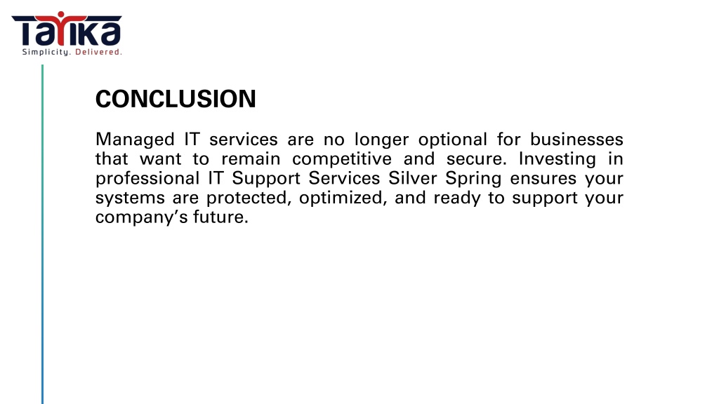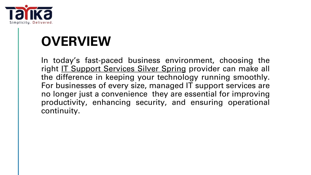 Looking for reliable IT Support Services Silver Spring? Discover how managed IT solutions from Tarika Group enhance cybersecurity, reduce downtime, and improve business efficiency with proactive monitoring and expert support.