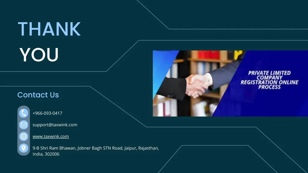 THANK YOU Contact Us +966-093-0417 support@taxwink.com www.taxwink.com 9-B Shri Ram Bhawan, Jobner Bagh STN Road, Jaipur, Rajasthan, India, 302006