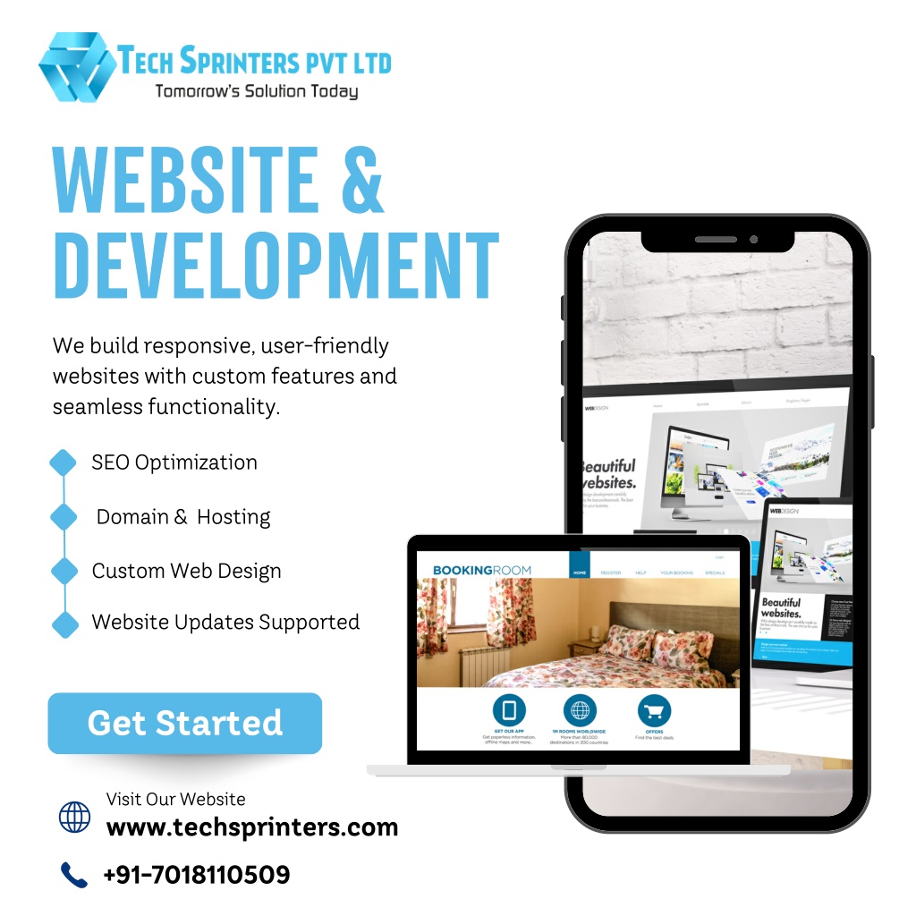 WEBSITE & DEVELOPMENT We build responsive, user-friendly websites with custom features and seamless functionality. SEO Optimization Domain & Hosting Custom Web Design Website Updates Supported Get Started Visit Our Website www.techsprinters.com +91-7018110509