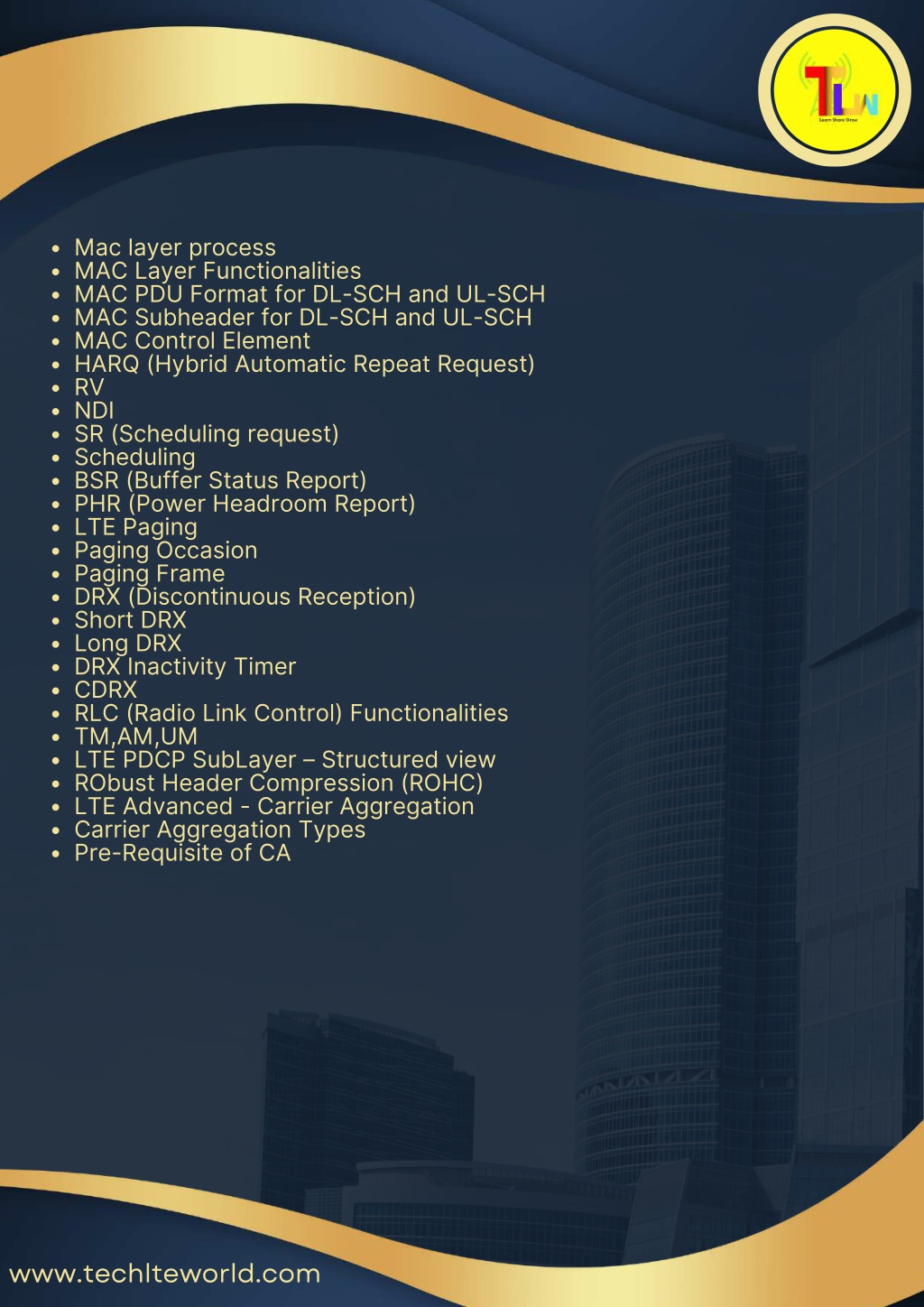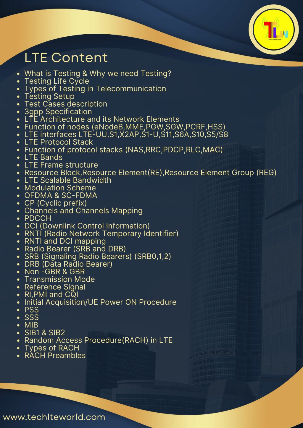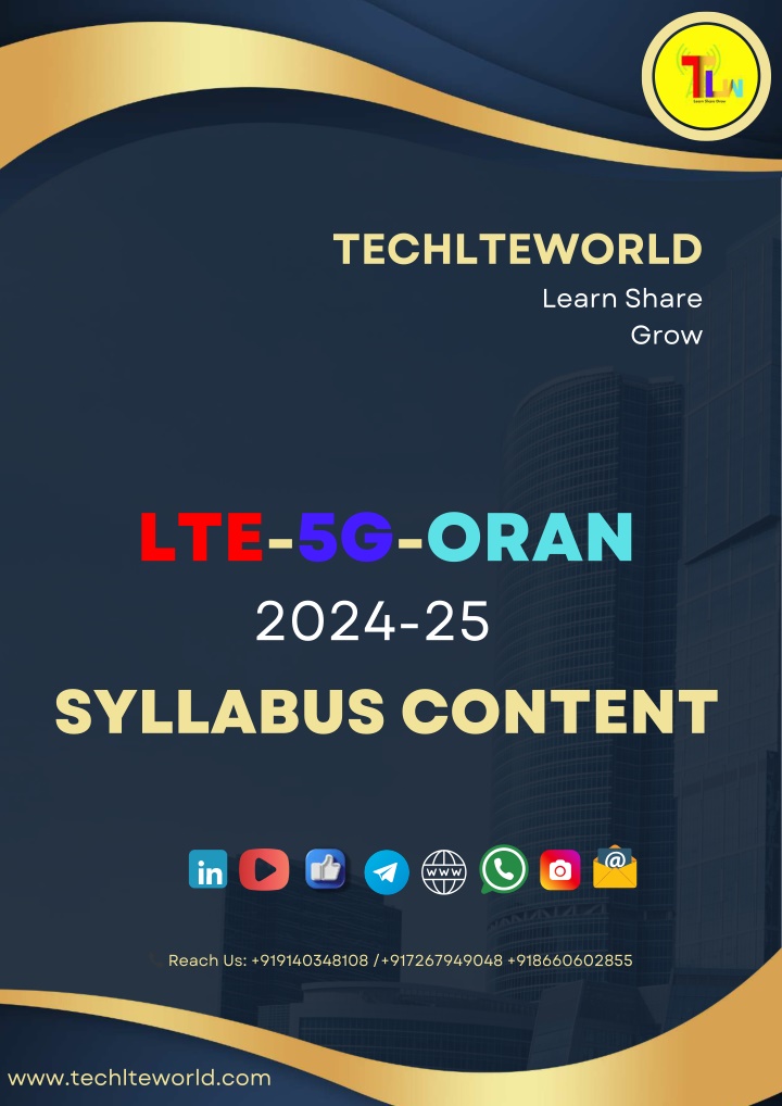 TECHLTEWORLD Learn Share Grow LTE-5G-ORAN 2024-25 SYLLABUS CONTENT ? Reach Us: +919140348108 /+917267949048 +918660602855 www.techlteworld.com