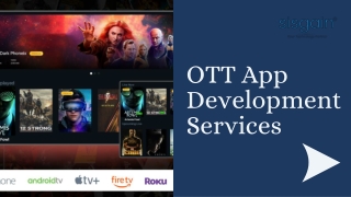 OTT App Development Services • End-to-end OTT app development services for web, mobile, Smart TV, and connected devices • Scalable cloud-based architecture with CDN integration for seamless streaming • Secure content delivery using DRM, encryption, and user authentication • Advanced features including live streaming, VOD, analytics, and monetization models